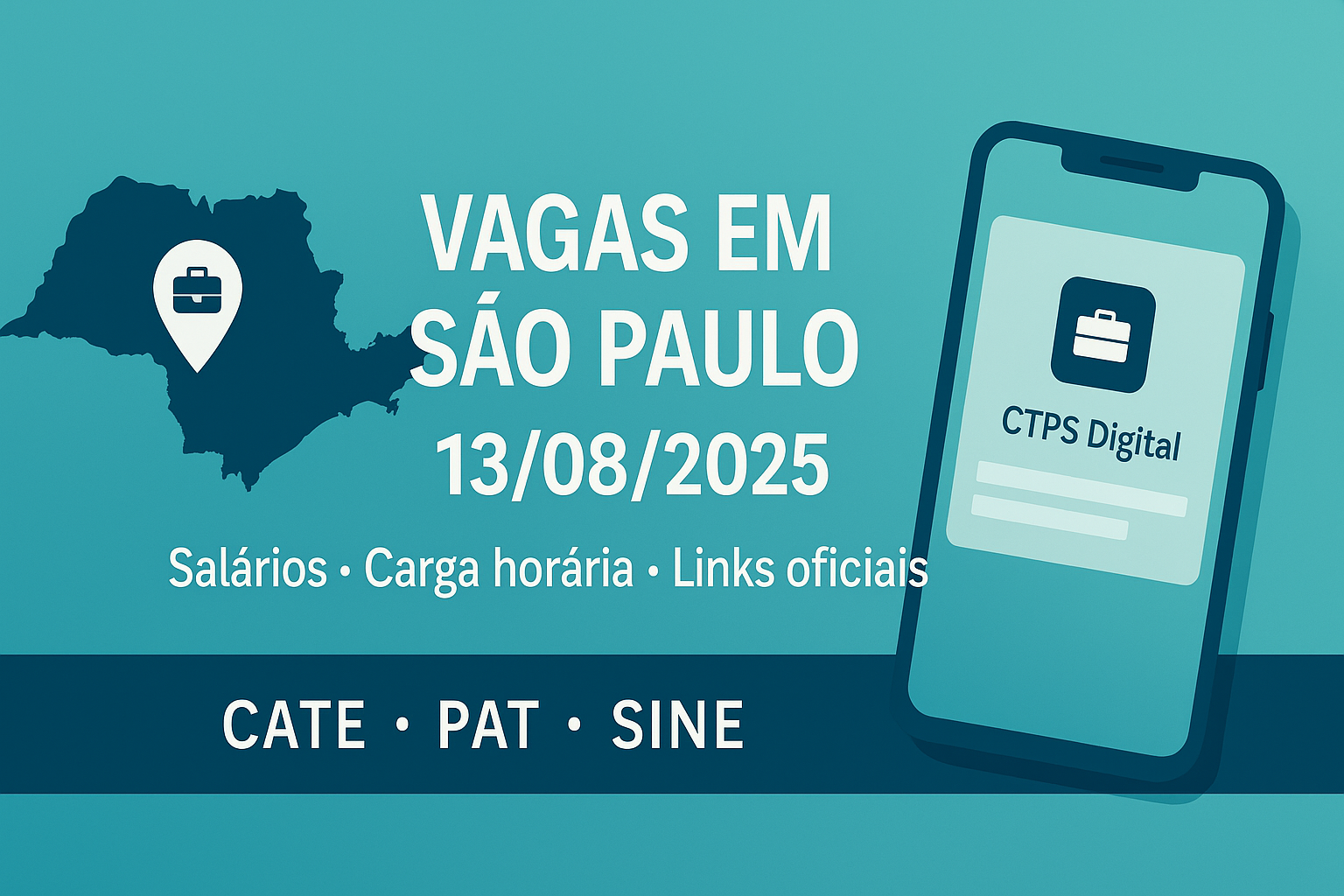 Vagas de emprego em São Paulo HOJE (13/08): salários, carga horária e links oficiais para se candidatar